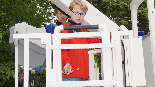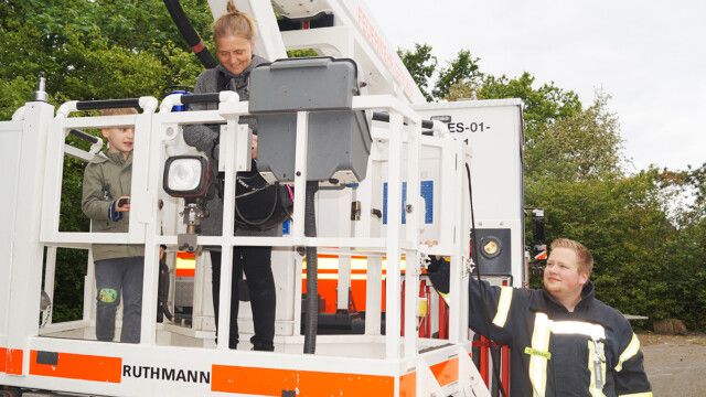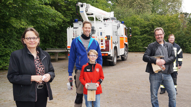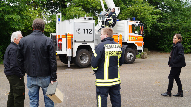 Mit dabei waren auch die Kameraden der Freiwilligen Feuerwehr. Mit ihrem Teleskopfahrzug wurde die Aktion zu einer Sache mit Spaßfaktor. Unser Vorsitzender Matthias Homann bedankte sich ausdrücklich für die freundliche Unterstützung.