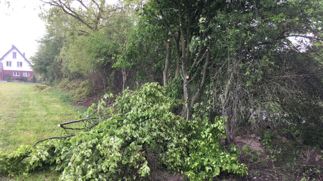 So wurde in Höhe Up de Schaar im Außenbereich erst jüngst eine Wallhecke massiv, bis in`s gewachsene Holz hinein, beschnitten. Das ist nur in der Zeit vom 1. Oktober bis 1. März erlaubt. Brütende Vögel sollen so geschützt werden.
